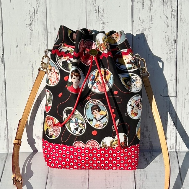 Black×Girl 可愛いだけじゃ、ちょっと物足りない人へ。 どこか懐かしくて、でも今っぽい。 いつものお出かけがもっとワクワクできるかも! --------------- 横 25cm 縦 20cm マチ 8cm --------------- ※金具は全てゴールドです。 ※商品の色味は、ご使用のモニターや画面により実物と異なる場合がございます。ご了承ください。 #サコッシュ #ショルダー #巾着バッグ