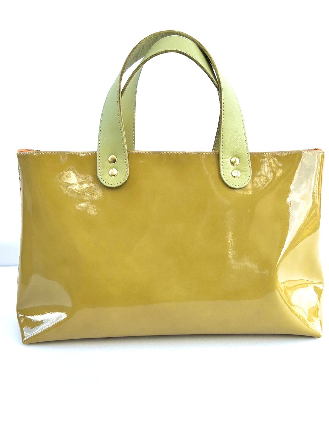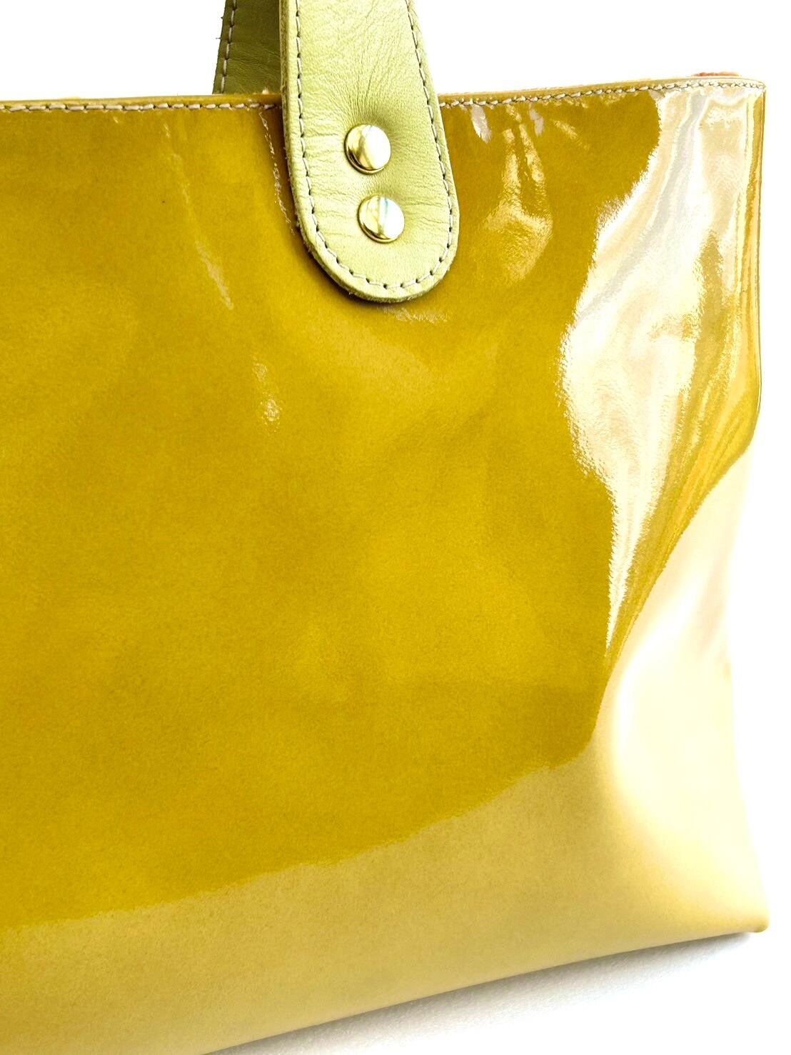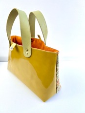 ウィリアムモリスの生地とエナメル加工が施された本革を合わせたハンドバッグです。