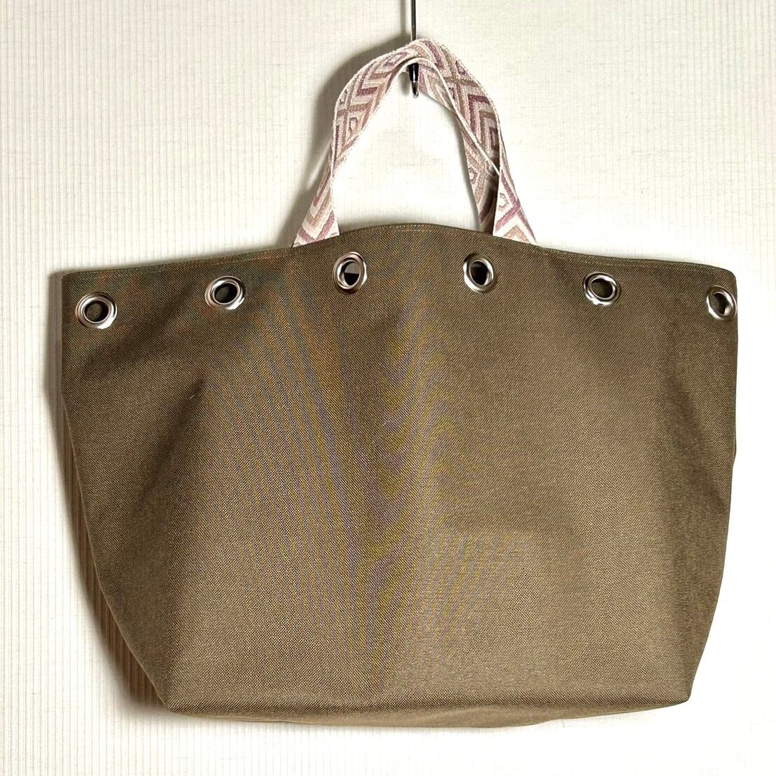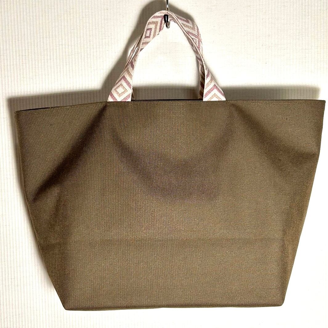 シンプルでスタイリッシュなカーキ色のコーデュラナイロントートバッグ。