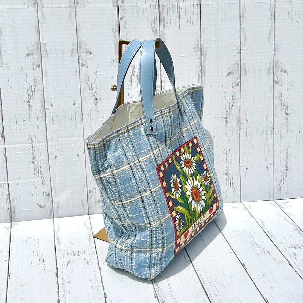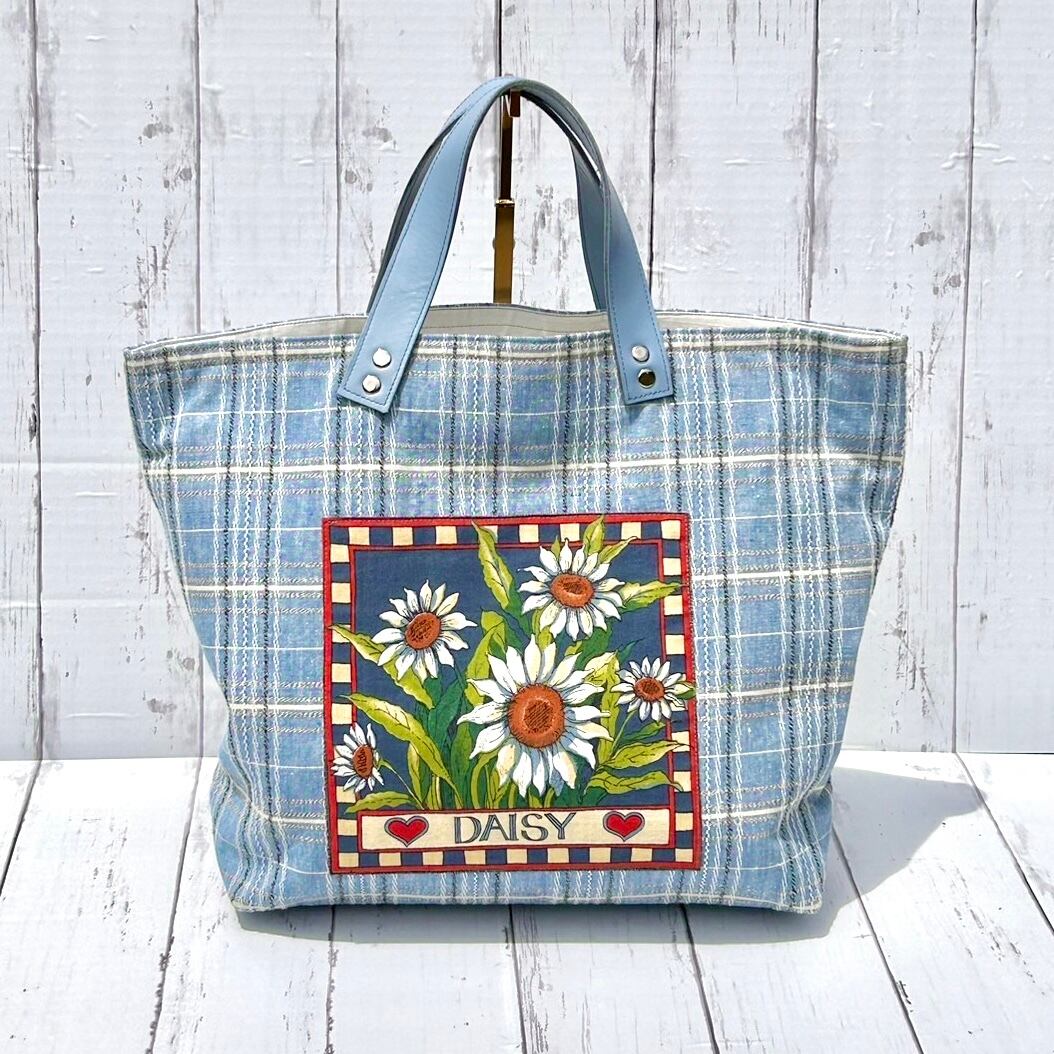 デイジー柄がキュートな爽やかブルーのハンドバッグ。愛らしいデザインが、毎日をもっと楽しくしてくれます!