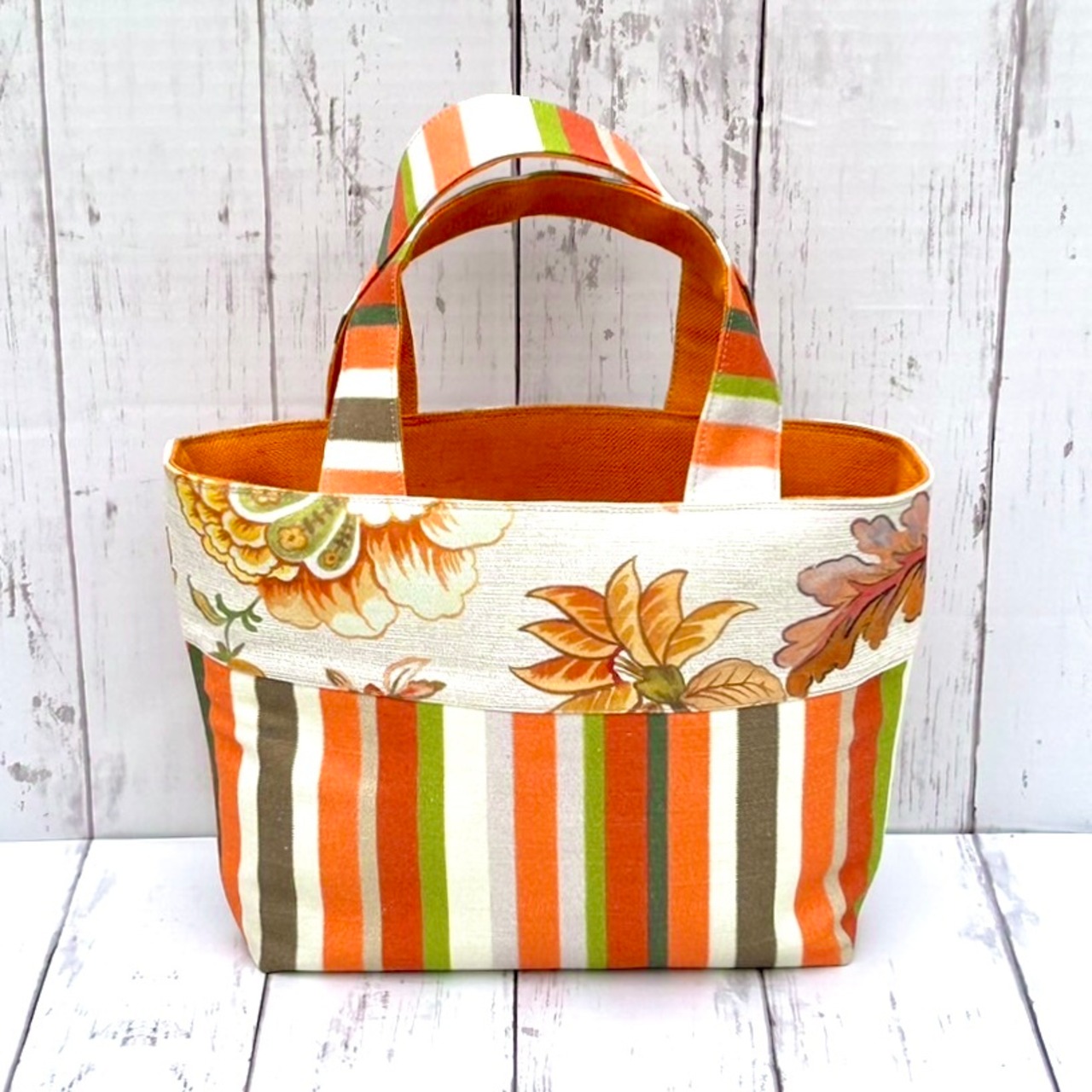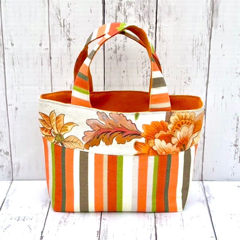 ホワイトとオレンジの組み合わせがとってもかわいい、フランス生地を使用したトートバッグです♪