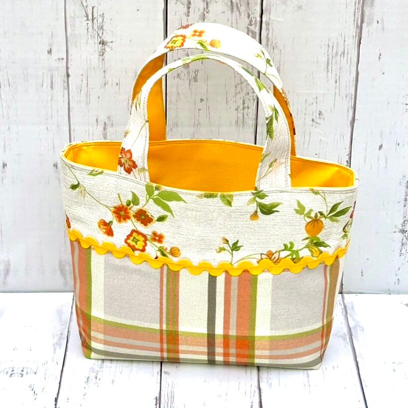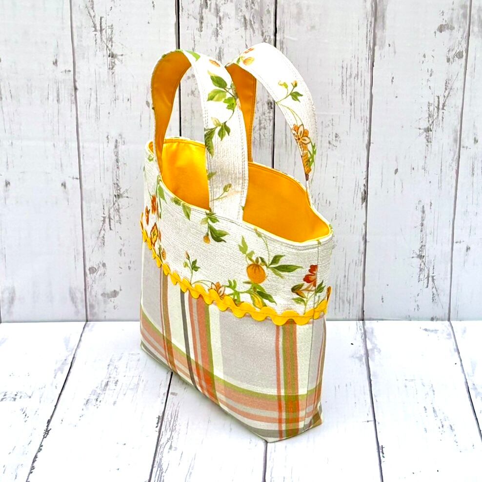 ホワイトとイエローの組み合わせがとってもかわいい、フランス生地を使用したトートバッグです♪