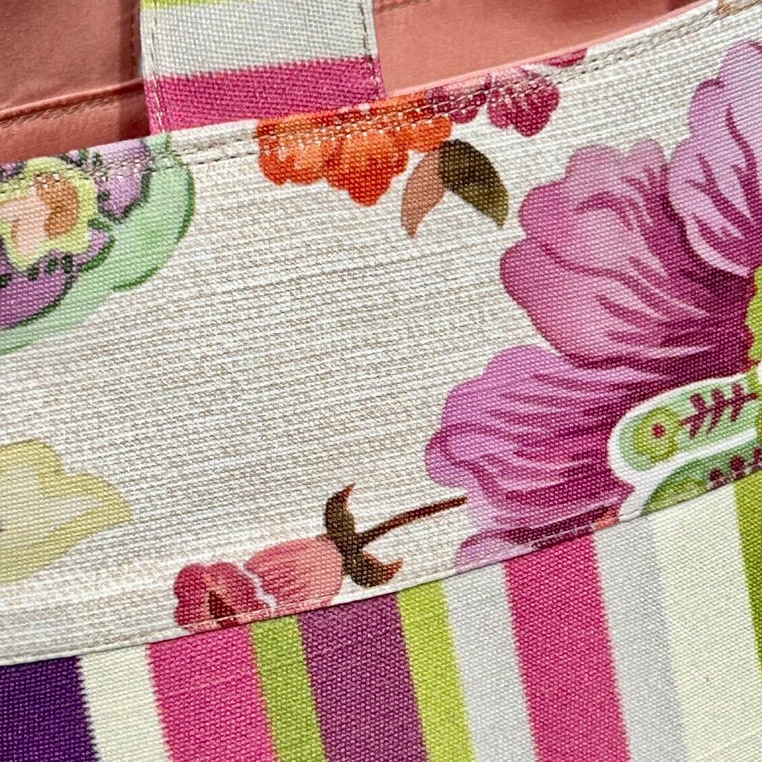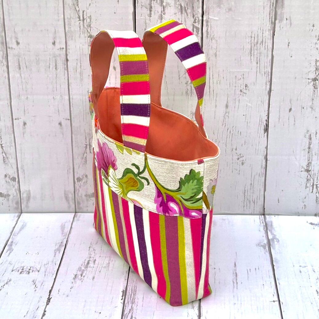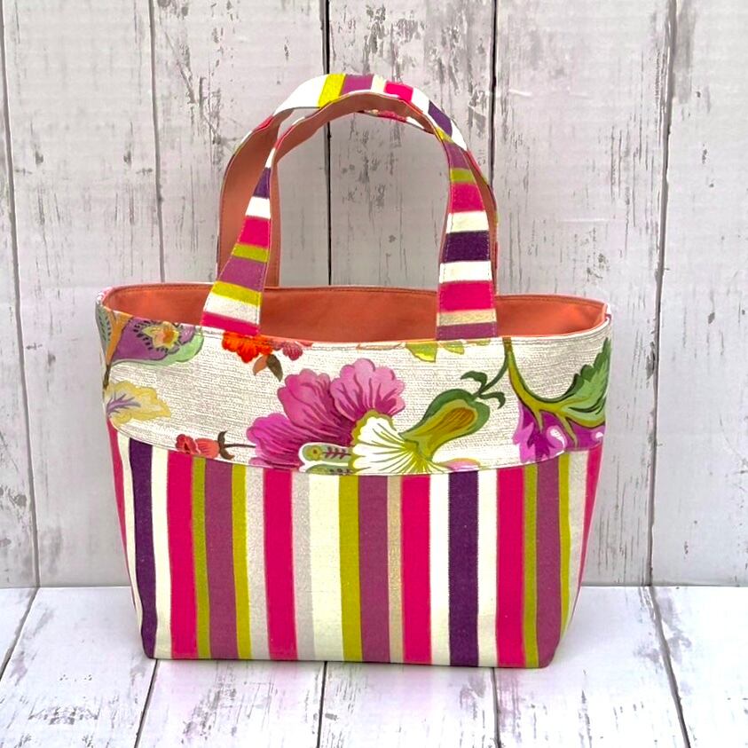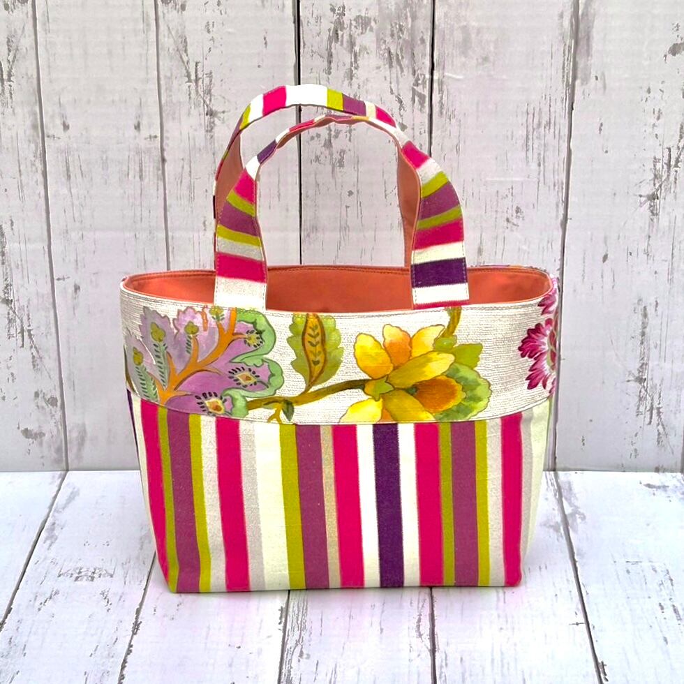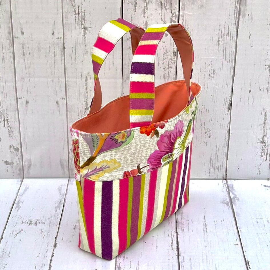 花柄とストライプのコンビが目を引く大人かわいいバッグ。大きすぎないサイズも使いやすくてオススメです♡