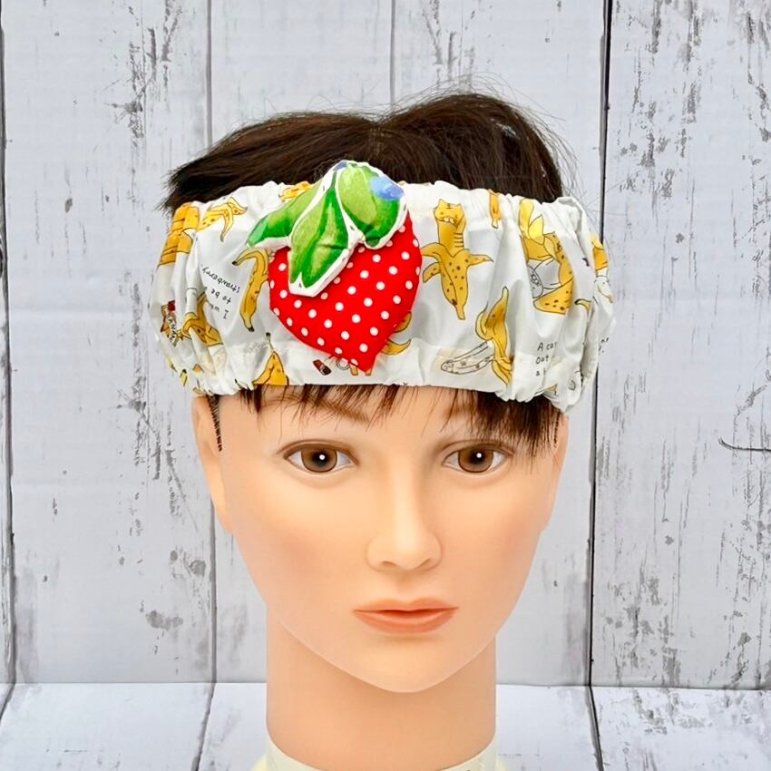 綿入りでぷっくり仕上げたいちごのモチーフが可愛い!洗顔用ヘアバンド です♪