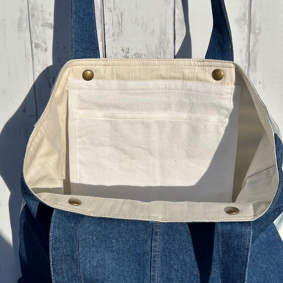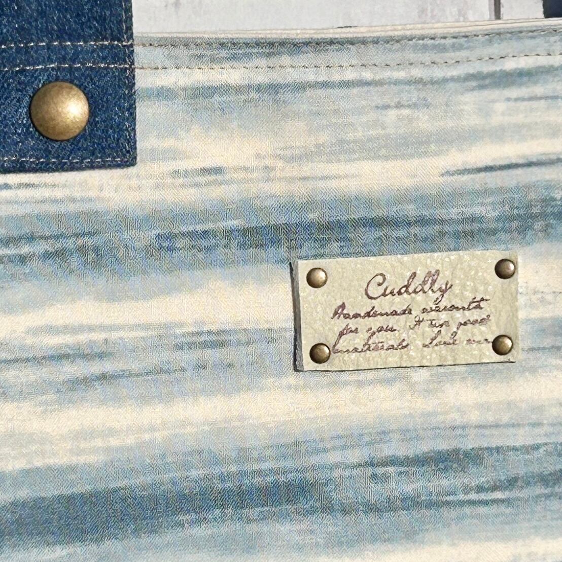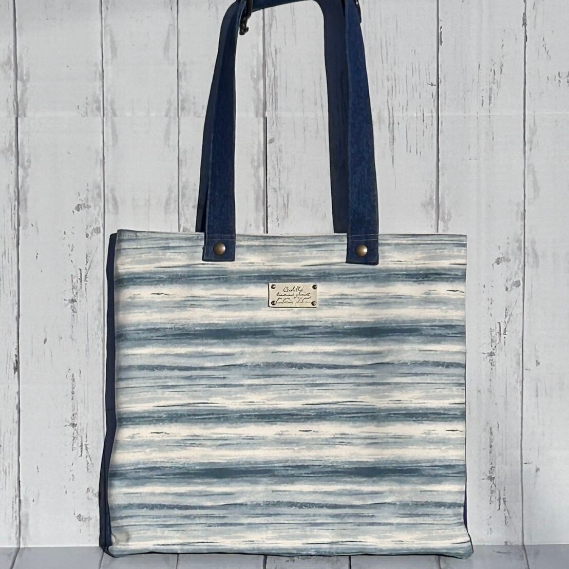 まるで海のさざ波みたいな、淡いブルーのニュアンス柄。ナチュラルだけど存在感のあるトートは、荷物が多い日も頼れる相棒に。