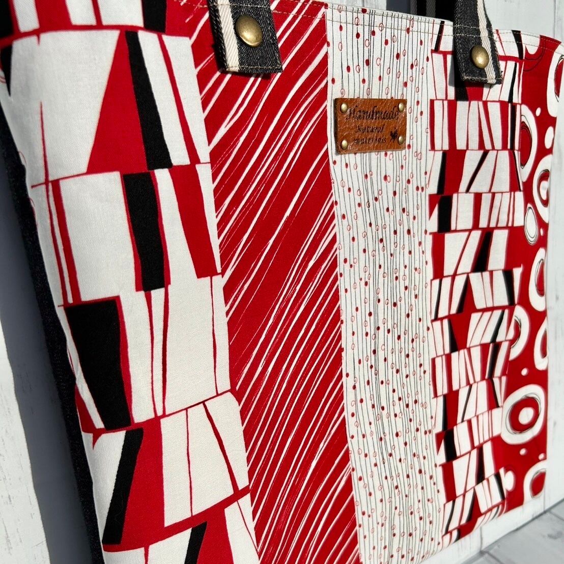 リズミカルな赤と白のパターンが交差し、まるで1枚の抽象画のような存在感。